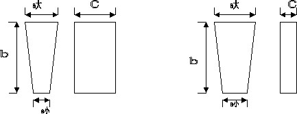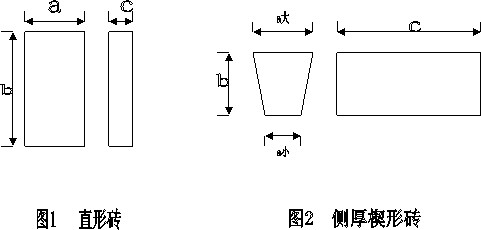 3.2.2 楔形耐火磚規(guī)格以b×(a大 /a小)×c表示。